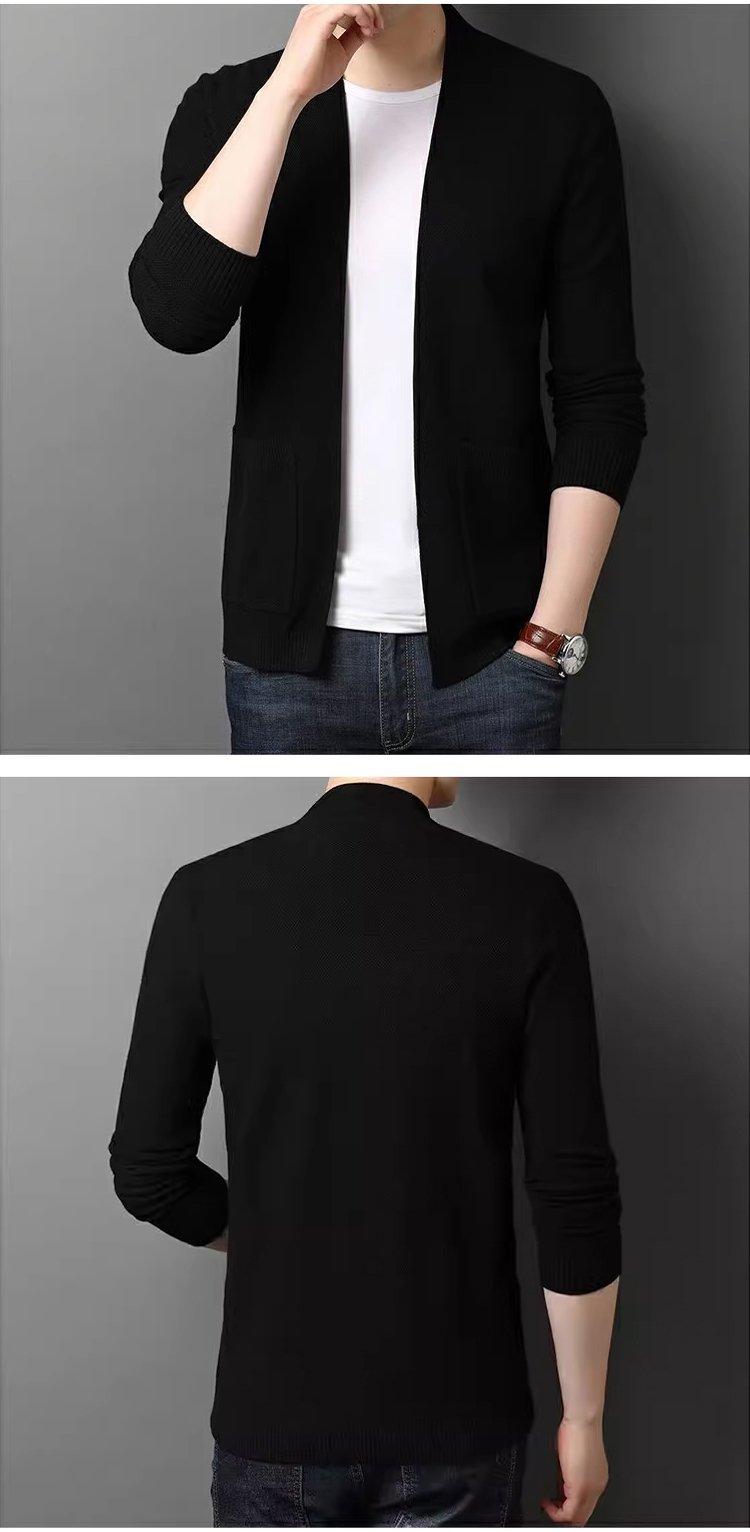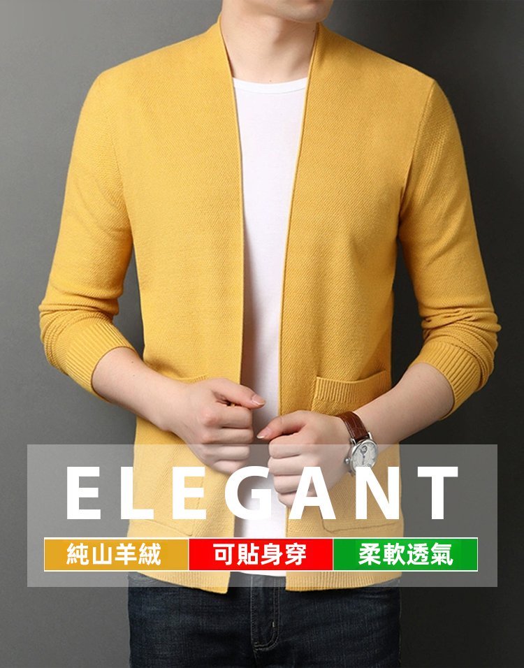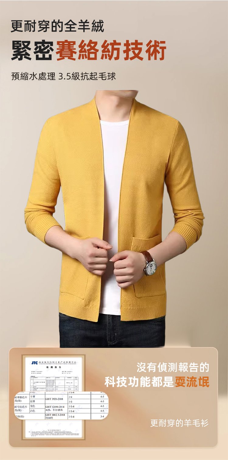 不縮水男士純色羊毛針織開襟衫